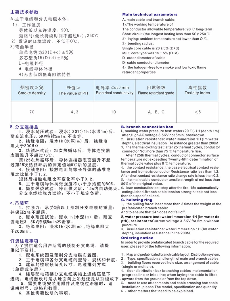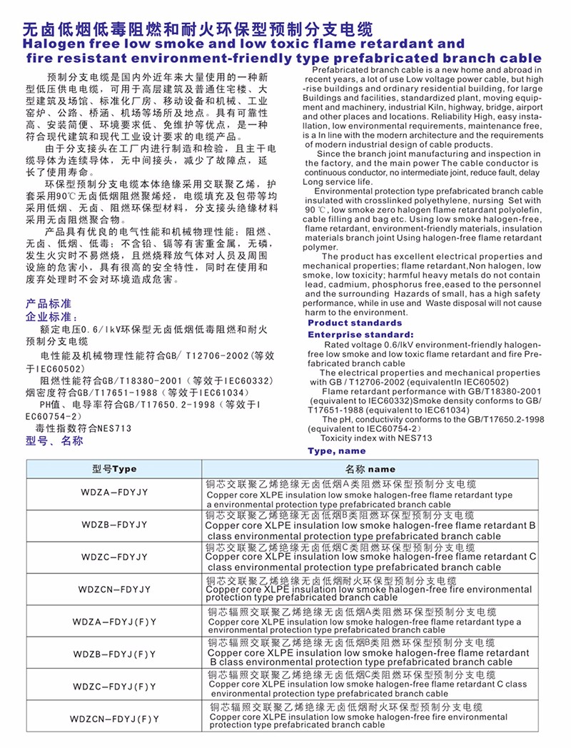 無鹵低煙低毒阻燃和耐火環保型預制分支電纜
